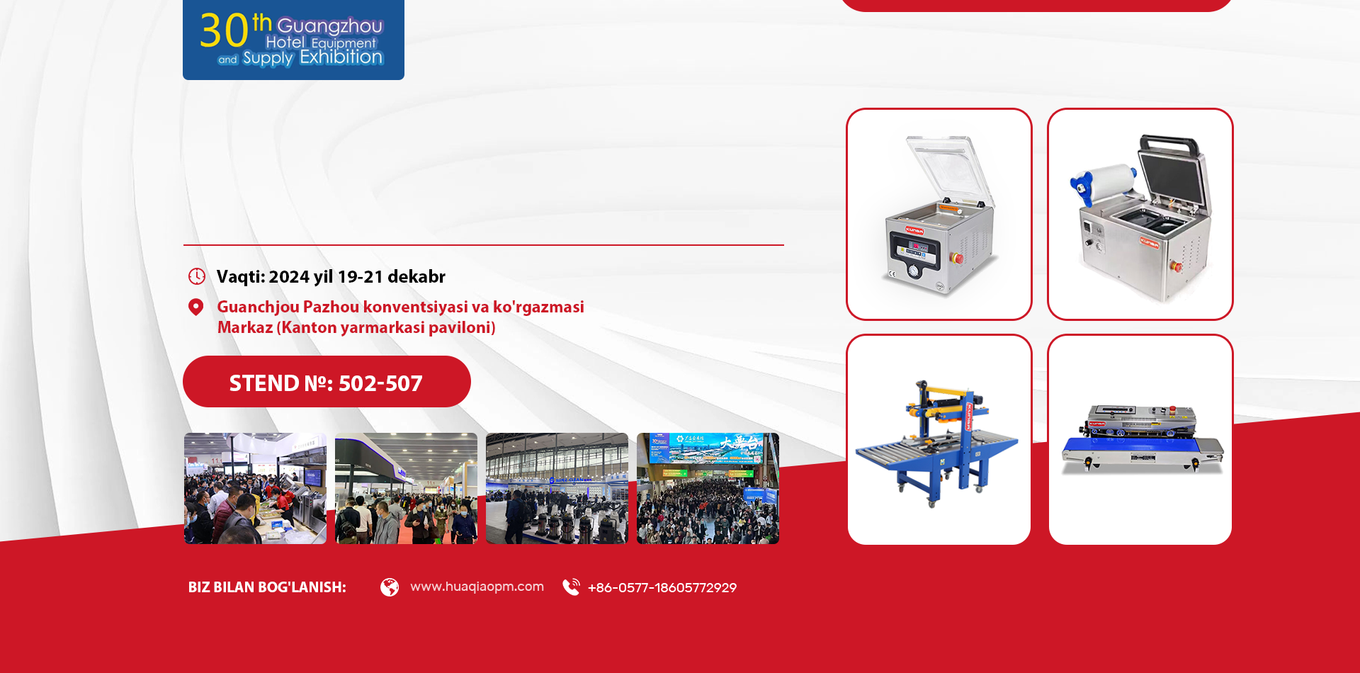 Ko'rgazma: 502 Izoh: 20-21, 2024-yillar: Guanchjou ko'rgazma zalida (Guanchjou ko'rgazma zali) ning o'ntyurtining ko'rgazmasi (ko'rgazma zali) bo'lib o'tadi.